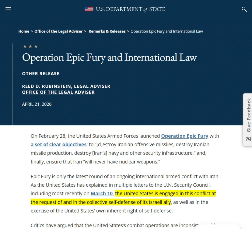 So, riddle me this, my friends: If the FSSA is in violation of International Law, the War Powers Act, the Hague Conventions, etc., why is not our “August Body” of “Legislators” giving our POTUS pause? Could it be the US Congress is totally owned by AIPAC? Just asking.